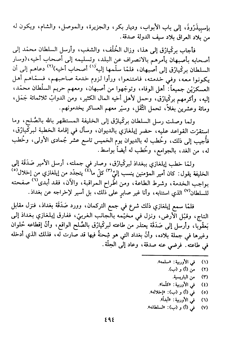 وَلَمَّا وَصَلَتْ رُسُلُ السُّلْطَانِ بَرْكِيَارُقَ إِلَى الْخَلِيفَةِ الْمُسْتَظْهِرِ بِاللَّهِ بِالصُّلْحِ، وَمَا اسْتَقَرَّتِ الْقَوَاعِدُ عَلَيْهِ، حَضَرَ إِيلْغَازِي بِالدِّيوَانِ، وَسَأَلَ فِي إِقَامَةِ الْخُطْبَةِ لبَرْكِيَارُقَ، فَأُجِيبُ إِلَى ذَلِكَ، وَخُطِبَ لَهُ بِالدِّيوَانِ يَوْمَ الْخَمِيسَ تَاسِعَ عَشَرَ جُمَادَى الْأُولَى، وَخُطِبَ لَهُ، مِنَ الْغَدِ، بِالْجَوَامِعِ، وَخُطِبَ لَهُ أَيْضًا بِوَاسِطَ.