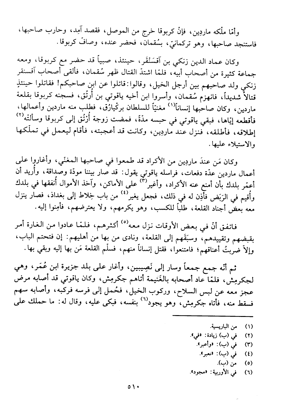 وَكَانَ عِمَادُ الدِّينِ زَنْكِي بْنُ آقَسَنْقَرَ، حِينَئِذٍ، صَبِيًّا قَدْ حَضَرَ مَعَ كَرْبُوقَا، وَمَعَهُ جَمَاعَةٌ كَثِيرَةٌ مِنْ أَصْحَابِ أَبِيهِ، فَلَمَّا اشْتَدَّ الْقِتَالُ ظَهَرَ سُقْمَانُ، فَأَلْقَى أَصْحَابُ آقَسَنْقَرَ زِنْكِي وَلَدَ صَاحِبِهِمْ بَيْنَ أَرْجُلِ الْخَيْلِ، وَقَالُوا: قَاتِلُوا عَنِ ابْنِ صَاحِبِكُمْ! فَقَاتَلُوا حِينَئِذٍ قِتَالًا شَدِيدًا، فَانْهَزَمَ سُقْمَانُ، وَأَسَرُوا ابْنَ أَخِيهِ يَاقُوتِي بْنَ أُرْتُقَ، فَسَجَنَهُ كَرْبُوقَا بِقَلْعَةِ مَارْدِينَ، وَكَانَ صَاحِبُهَا إِنْسَانًا مُغَنِيًّا لِلسُّلْطَانِ بَرْكِيَارُقَ، فَطَلَبَ مِنْهُ مَارْدِينَ وَأَعْمَالَهَا، فَأَقْطَعُهُ إِيَّاهَا، فَبَقِيَ يَاقُوتِي فِي حَبْسِهِ مُدَّةً، فَمَضَتْ زَوْجَةُ أُرْتُقَ إِلَى كَرْبُوقَا وَسَأَلَتْهُ إِطْلَاقَهُ، فَأَطْلَقَهُ، فَنَزَلَ عِنْدَ مَارْدِينَ، وَكَانَتْ قَدْ أَعْجَبَتْهُ، فَأَقَامَ لِيَعْمَلَ فِي تَمَلُّكِهَا، وَالِاسْتِيلَاءِ عَلَيْهَا.