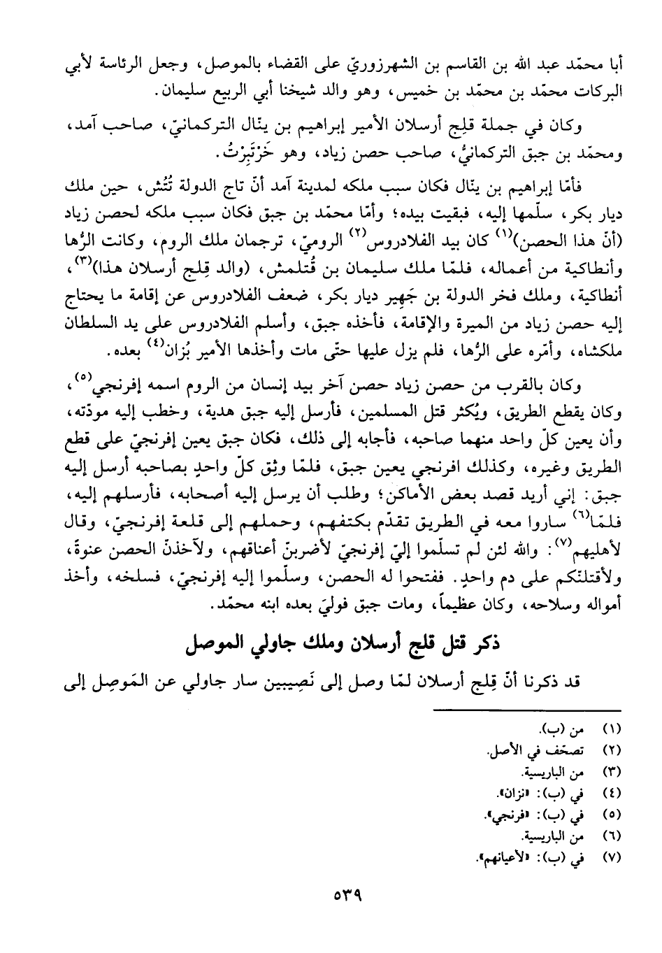 وَكَانَ فِي جُمْلَةِ قِلْجِ أَرْسِلَانَ الْأَمِيرُ إِبْرَاهِيمُ بْنُ يَنَّالَ التُّرْكُمَانِيُّ، صَاحِبُ آمِدَ، وَمُحَمَّدُ بْنُ جَبْقَ التُّرْكُمَانِيُّ، صَاحِبُ حِصْنِ زِيَادٍ، وَهُوَ خَرْتَبِرْتُ.