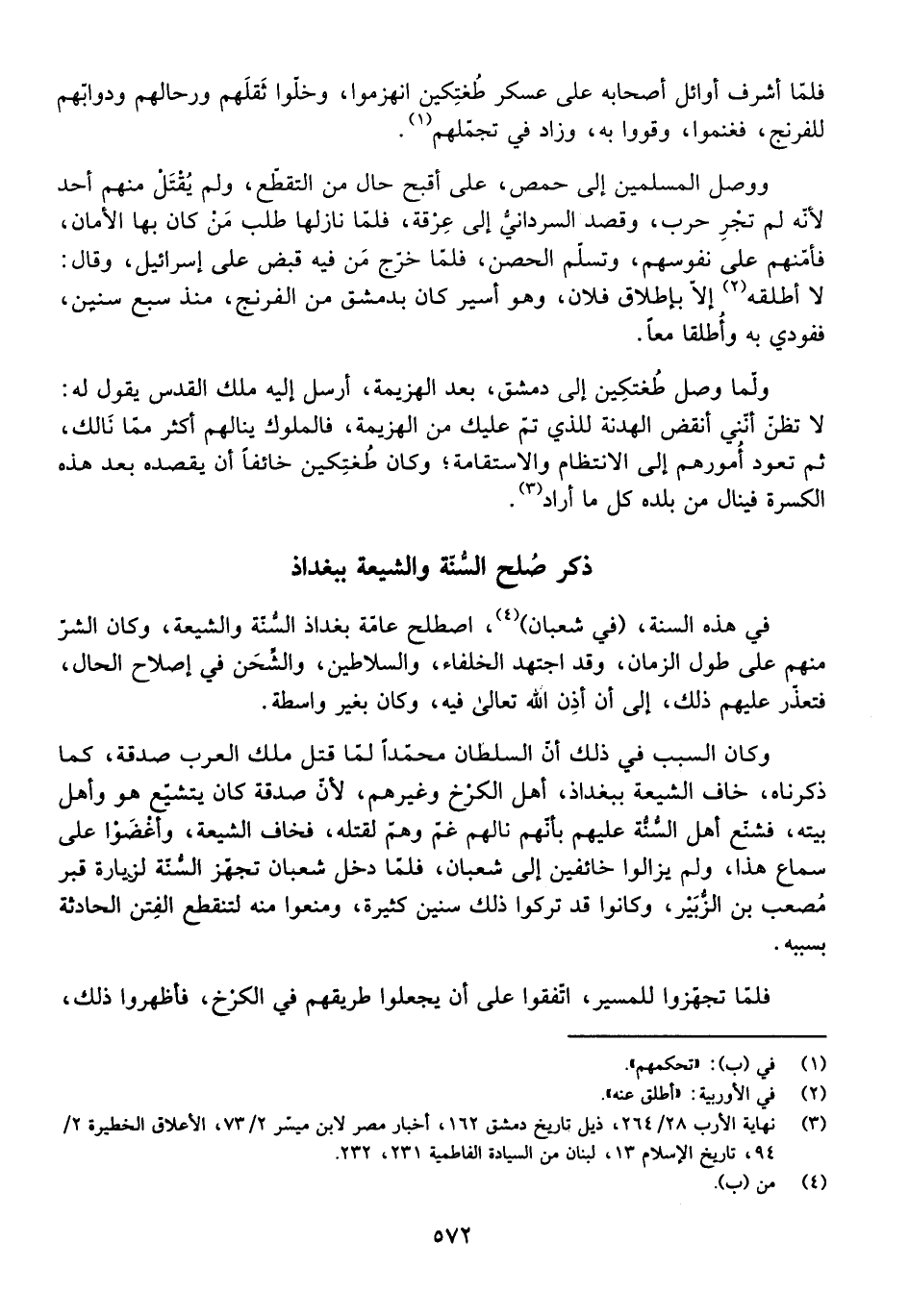 ذِكْرُ صُلْحِ السُّنَّةِ وَالشِّيعَةِ بِبَغْدَاذَ