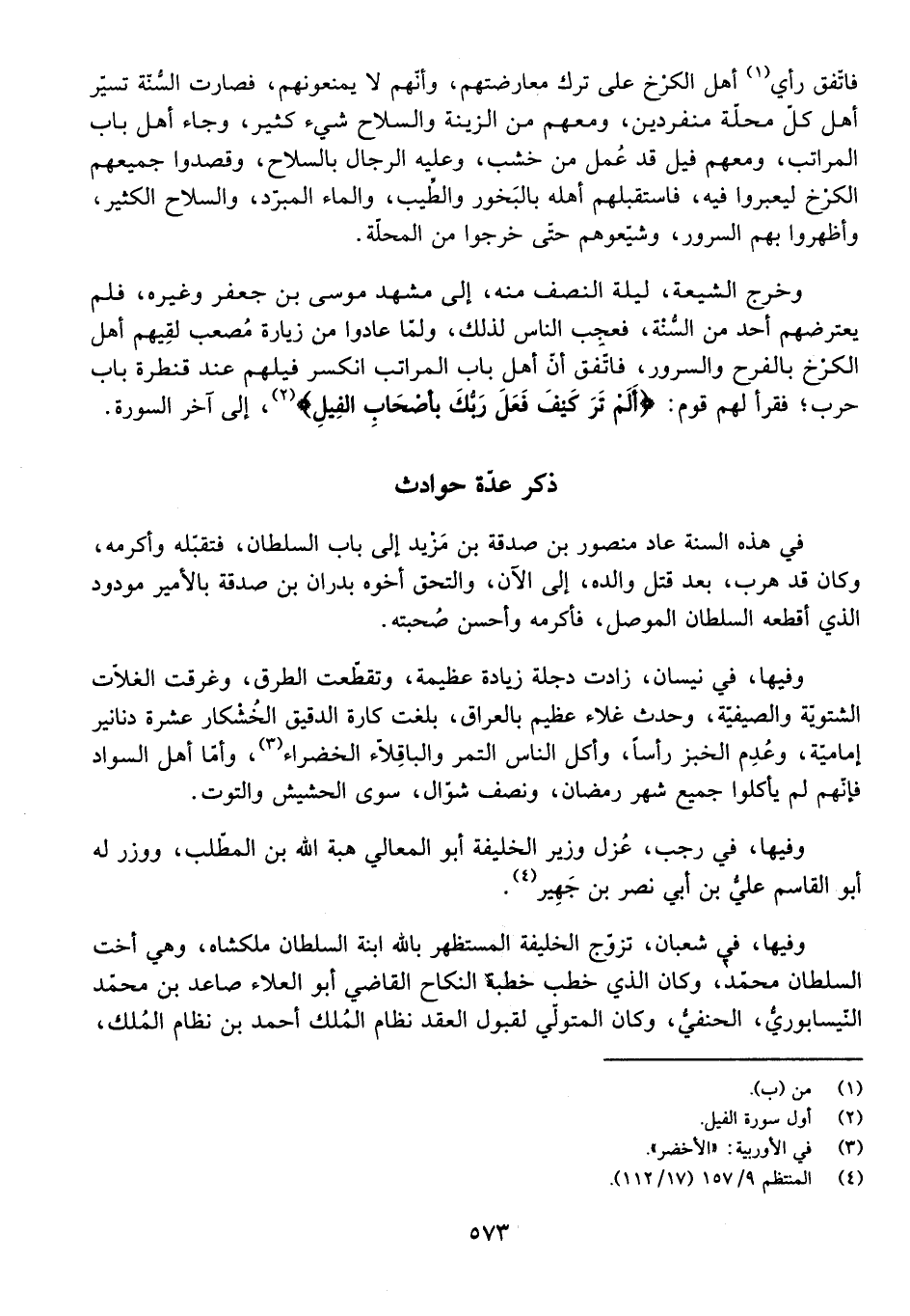 ذِكْرُ عِدَّةِ حَوَادِثَ