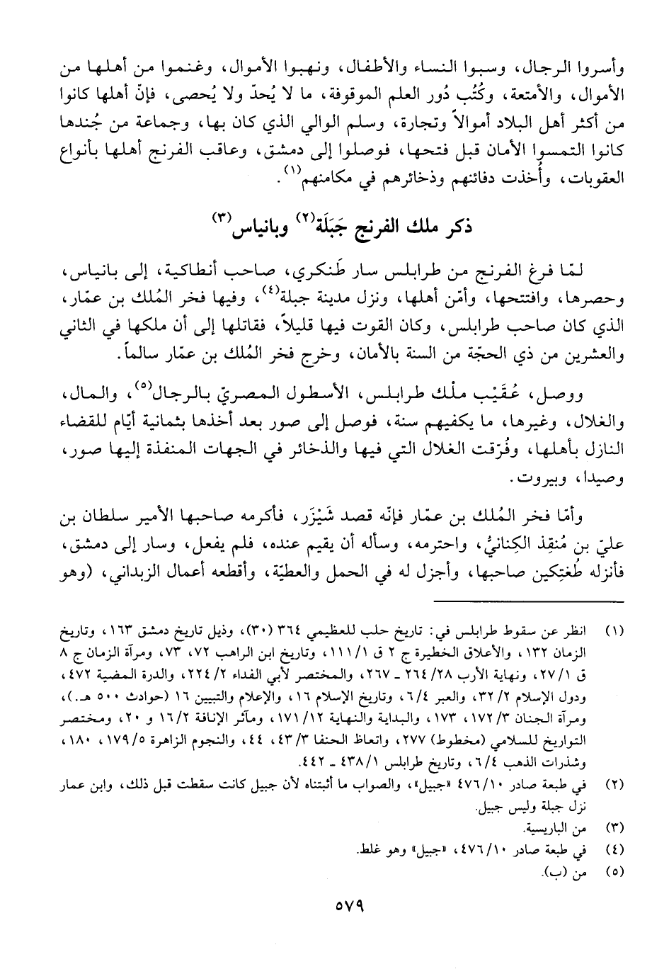 ذِكْرُ مُلْكِ الْفِرِنْجِ جَبَلَةَ وَبَانْيَاسَ