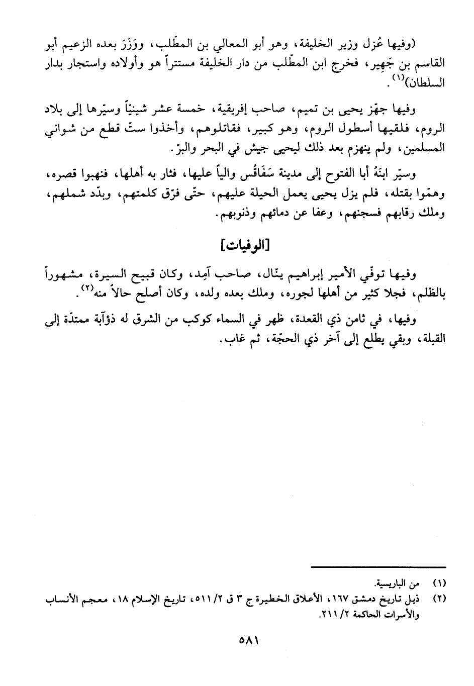 وَفِيهَا جَهَّزَ يَحْيَى بْنُ تَمِيمٍ، صَاحِبُ إِفْرِيقِيَّةَ، خَمْسَةَ عَشَرَ شِينِيًّا وَسَيَّرَهَا إِلَى بِلَادِ الرُّومِ، فَلَقِيَهَا أُسْطُولُ الرُّومِ، وَهُوَ كَبِيرٌ، فَقَاتَلُوهُمْ، وَأَخَذُوا سِتَّ قِطَعٍ مِنْ شَوَانِي الْمُسْلِمِينَ، وَلَمْ يَنْهَزِمْ بَعْدَ ذَلِكَ لِيَحْيَى جَيْشٌ فِي الْبَحْرِ وَالْبَرِّ.