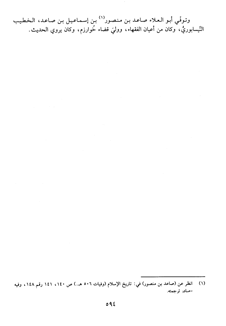 وَتُوُفِّيَ أَبُو الْعَلَاءِ صَاعِدُ بْنُ مَنْصُورِ بْنِ إِسْمَاعِيلَ بْنِ صَاعِدٍ، الْخَطِيبُ النَّيْسَابُورِيُّ، وَكَانَ مِنْ أَعْيَانِ الْفُقَهَاءِ، وَوَلِيَ قَضَاءَ خُوَارَزْمَ، وَكَانَ يَرْوِي الْحَدِيثَ.