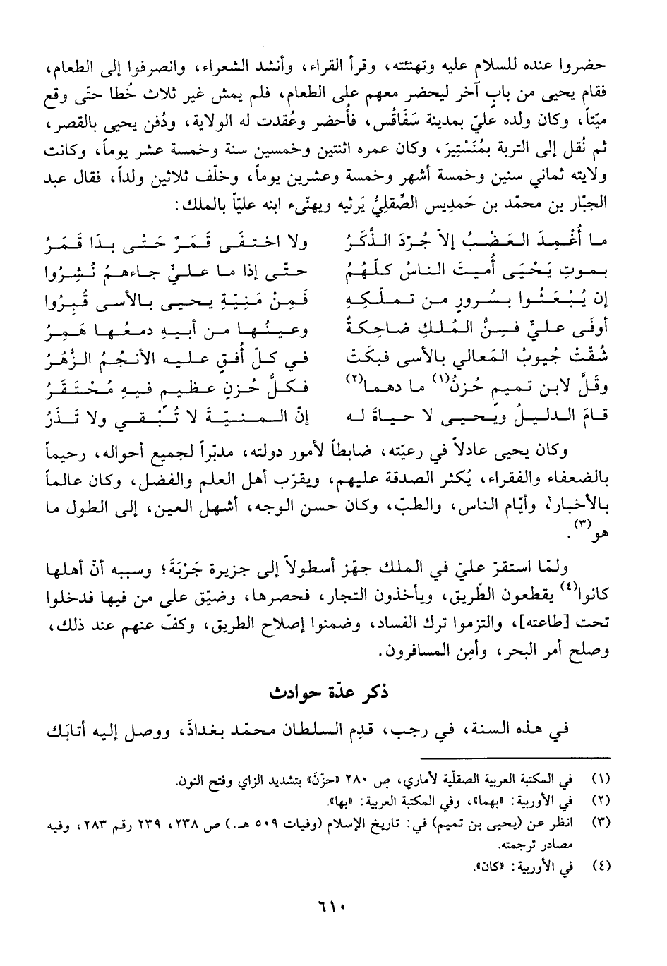ذِكْرُ عِدَّةِ حَوَادِثَ