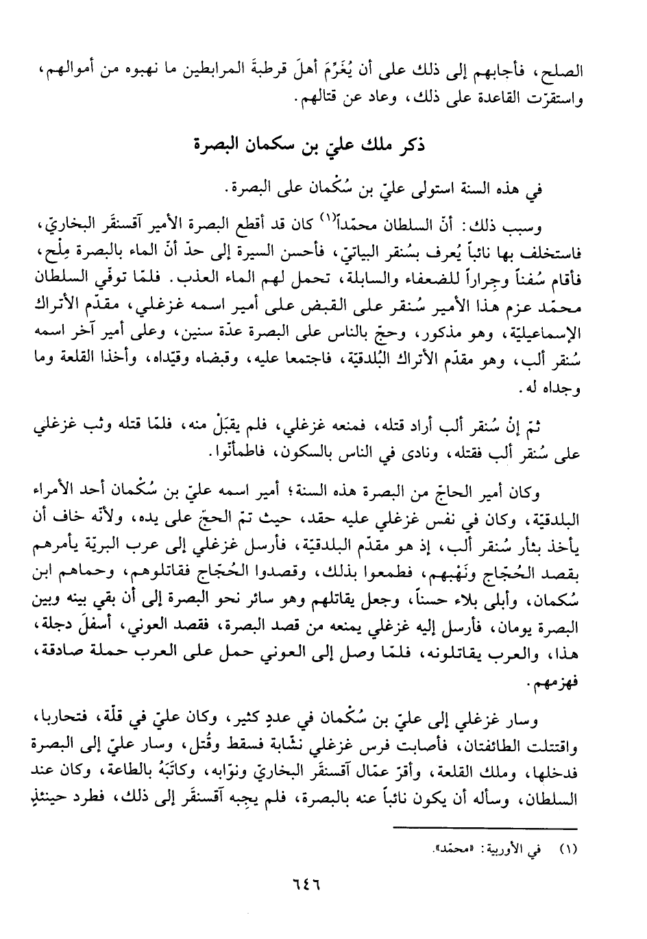 ذِكْرُ مُلْكِ عَلِيِّ بْنِ سُكْمَانَ الْبَصْرَةَ