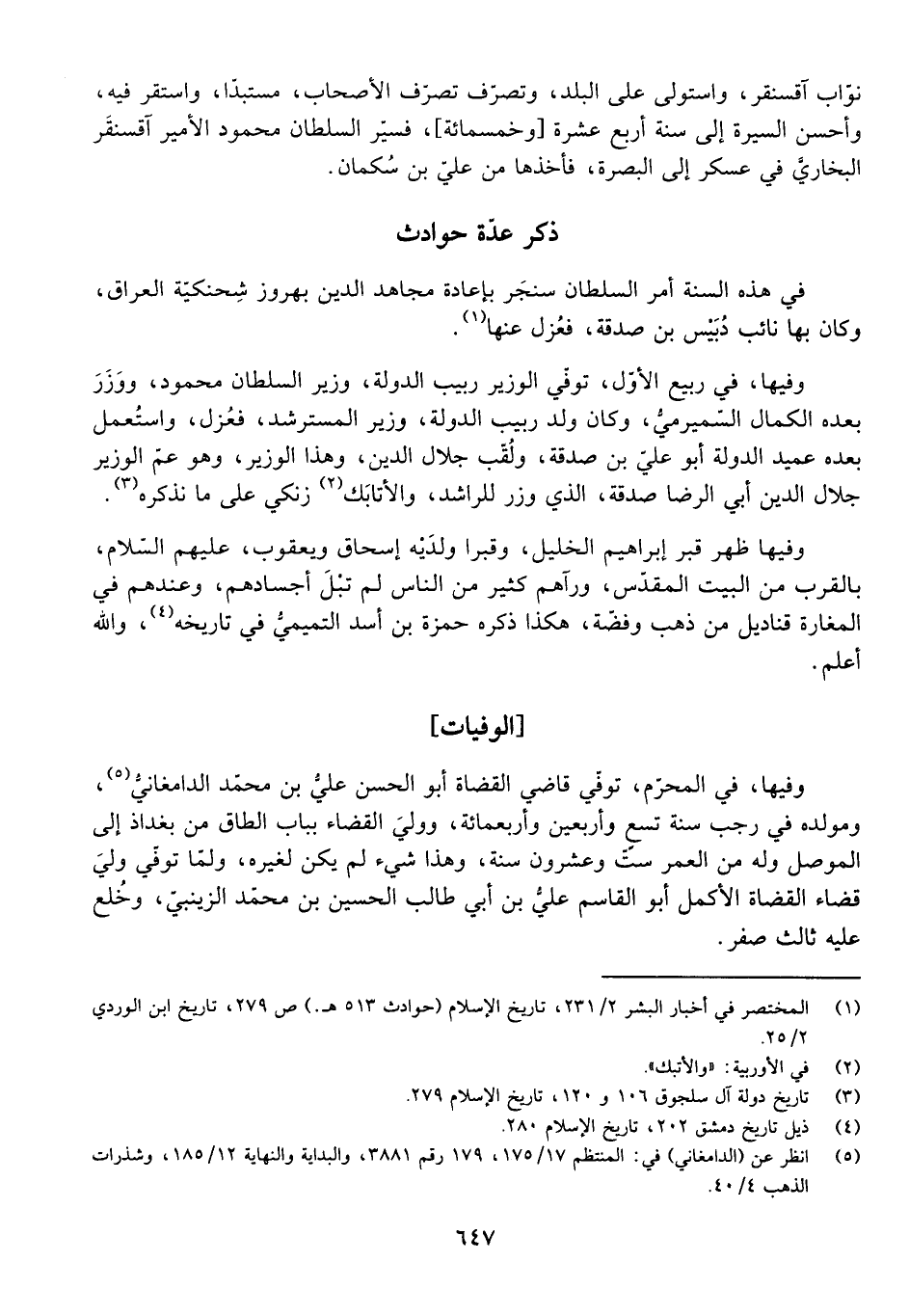 ذِكْرُ عِدَّةِ حَوَادِثَ