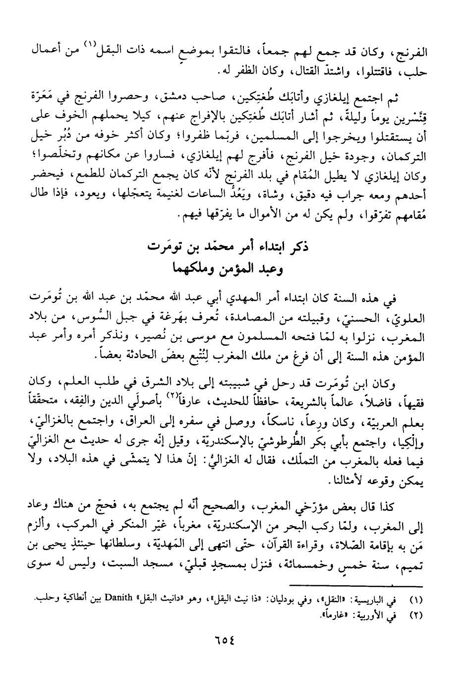 ذِكْرُ ابْتِدَاءِ أَمْرِ مُحَمَّدِ بْنِ تُومَرْتَ وَعَبْدِ الْمُؤْمِنِ وَمُلْكِهِمَا