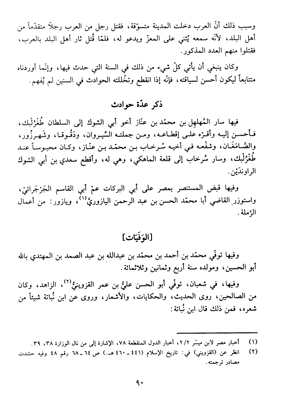 وَكَانَ يَنْبَغِي أَنْ يَأْتِيَ كُلُّ شَيْءٍ مِنْ ذَلِكَ فِي السَّنَةِ الَّتِي حَدَثَ فِيهَا، وَإِنَّمَا أَوْرَدْنَاهُ مُتَتَابِعًا لِيَكُونَ أَحْسَنَ لِسِيَاقَتِهِ، فَإِنَّهُ إِذَا انْقَطَعَ وَتَخَلَّلَتْهُ الْحَوَادِثُ فِي السِّنِينَ لَمْ يُفْهَم ْ.