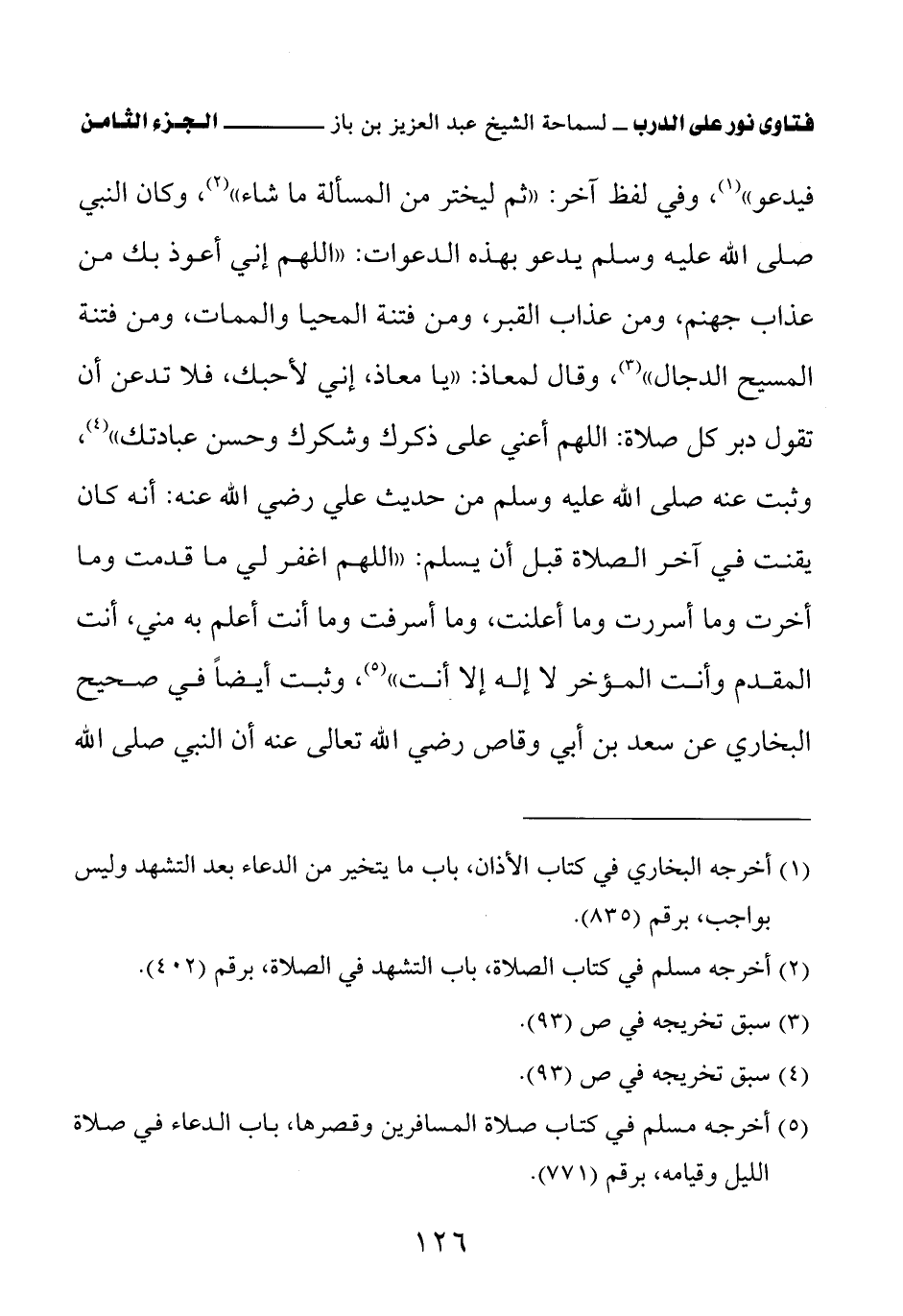 (¬1) أخرجه البخاري في كتاب الأذان، باب ما يتخير من الدعاء بعد التشهد وليس بواجب، برقم (835)
