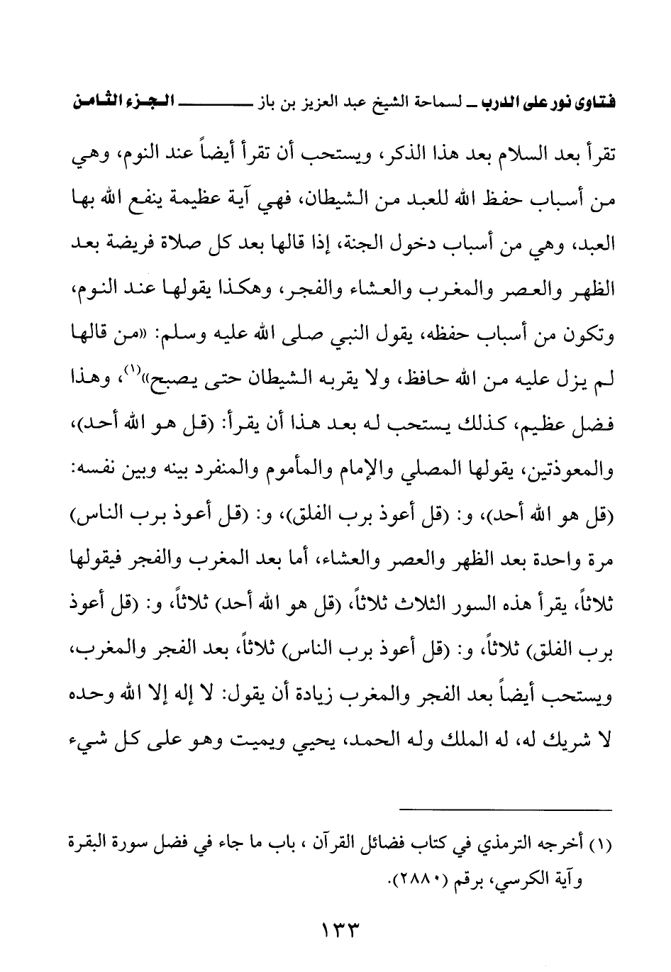 (¬1) أخرجه الترمذي في كتاب فضائل القرآن، باب ما جاء في فضل سورة البقرة وآية الكرسي برقم (2880)