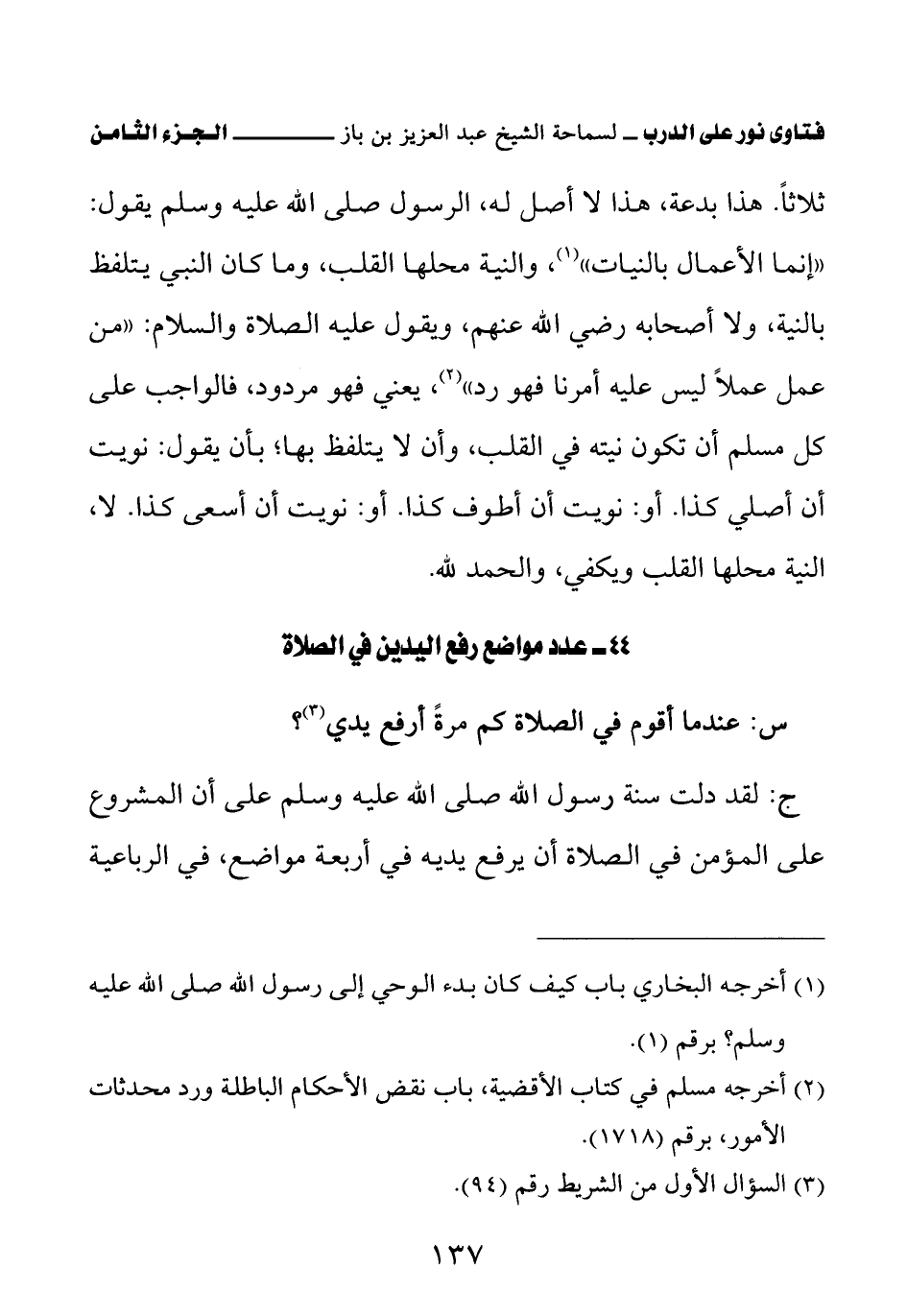 كتاب فتاوى نور على الدرب لابن باز بعناية الشويعر (اسم الجزء: 8)