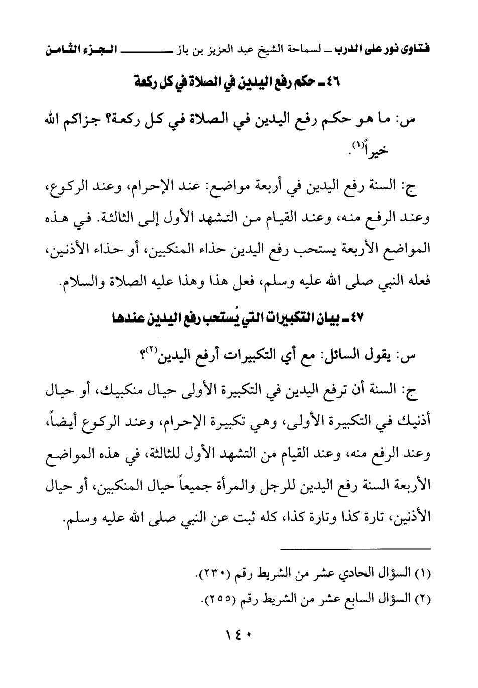 46 - حكم رفع اليدين في الصلاة في كل ركعة