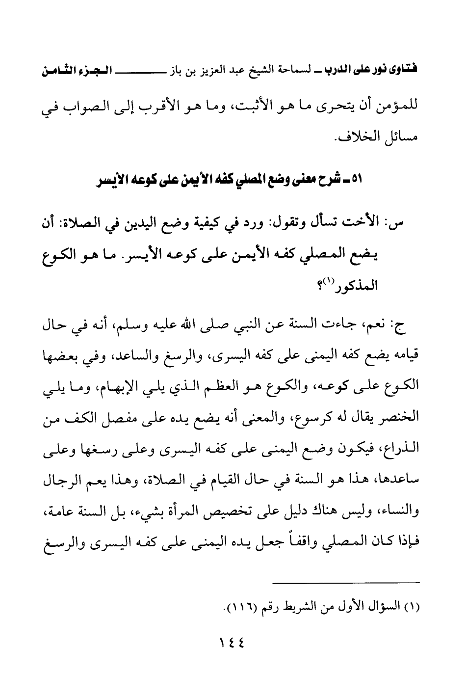 51 - شرع معنى وضع المصلي كفه الأيمن على كوعه الأيسر