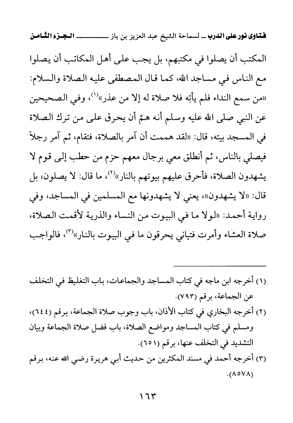 (¬1) أخرجه ابن ماجه في كتاب المساجد والجماعات، باب التغليظ في التخلف عن الجماعة، برقم (793)