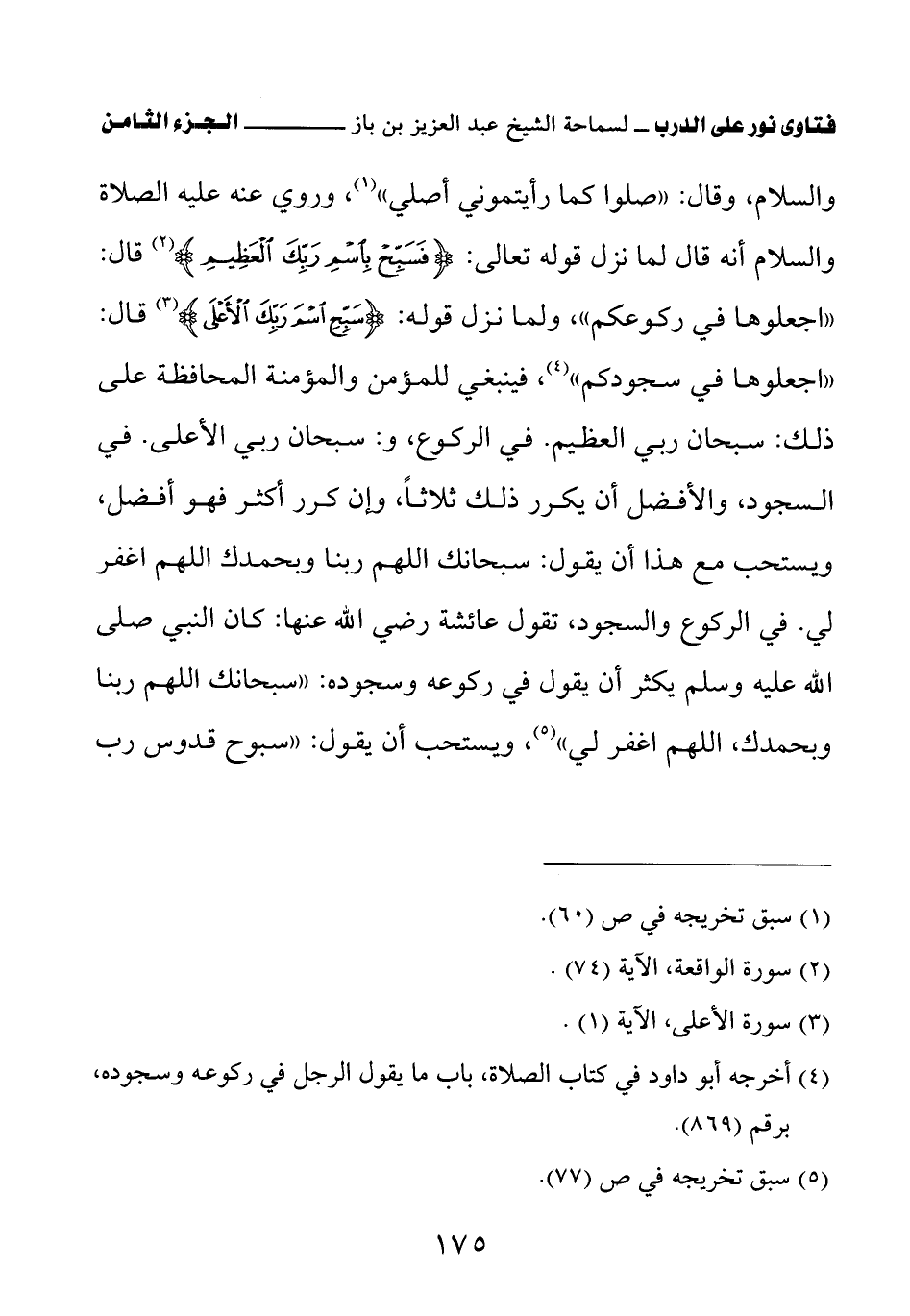 (¬3) أخرجه أبو داود في كتاب الصلاة باب ما يقول الرجل في ركوعه وسجوده، برقم (869)
