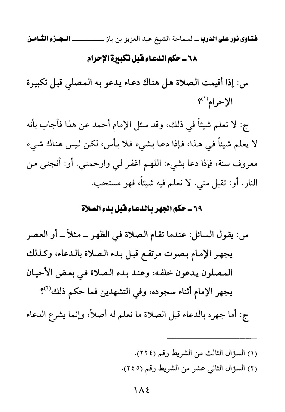 68 - حكم الدعاء قبل تكبيرة الإحرام