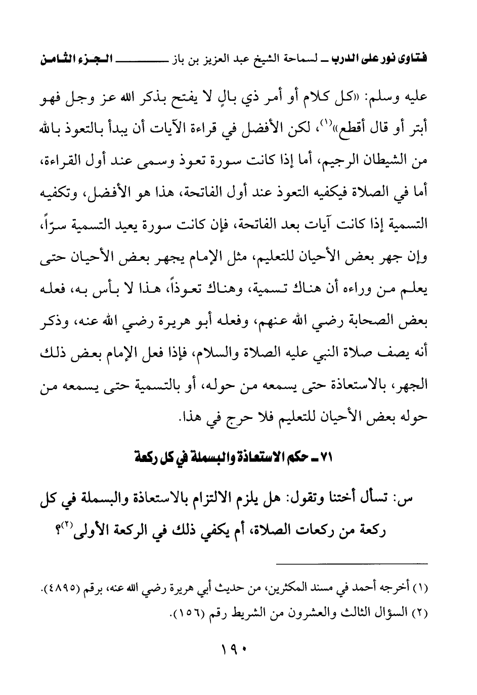 71 - حكم الاستعاذة والبسملة في كل ركعة