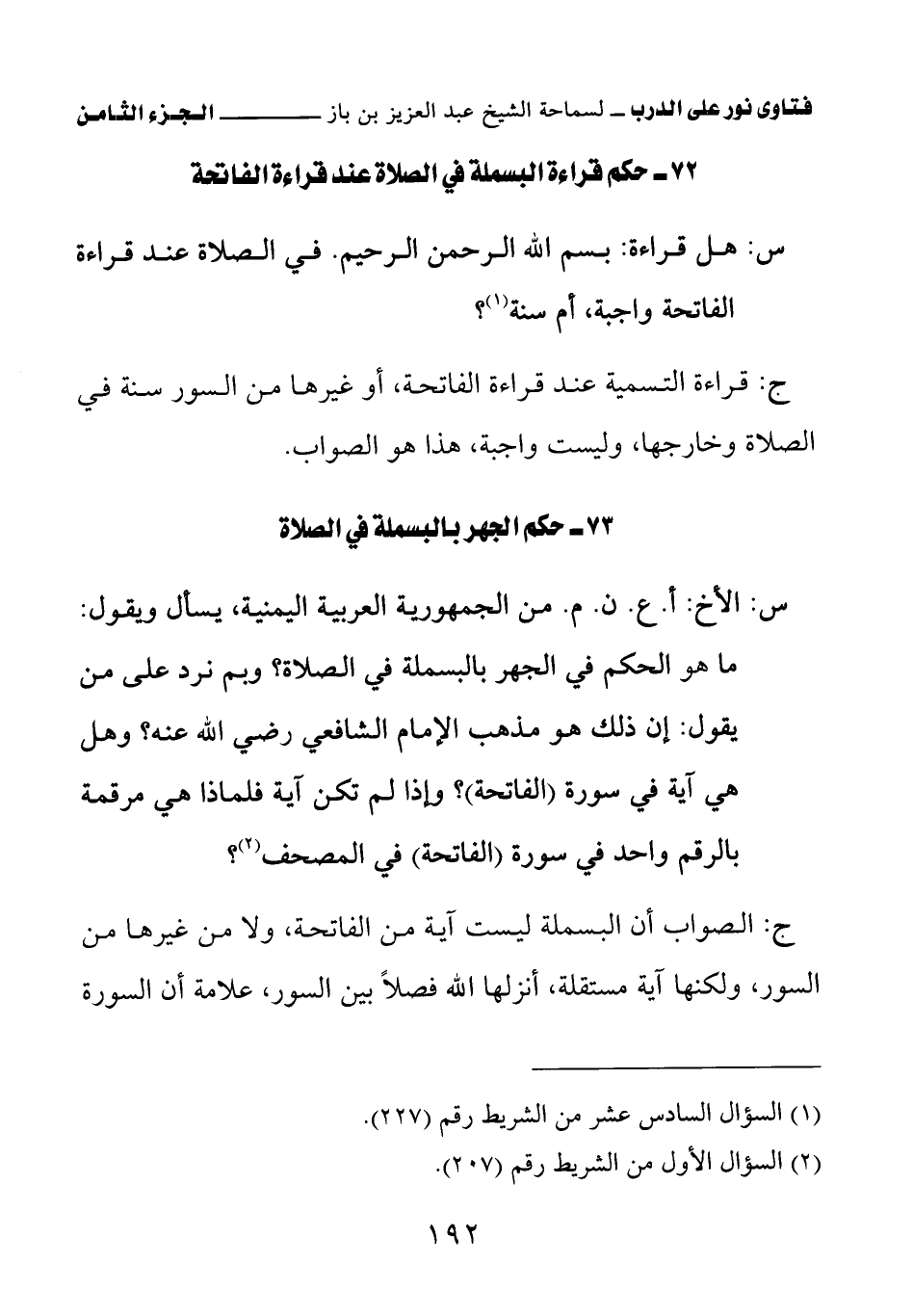 72 - حكم قراءة البسملة في الصلاة عند قراءة الفاتحة