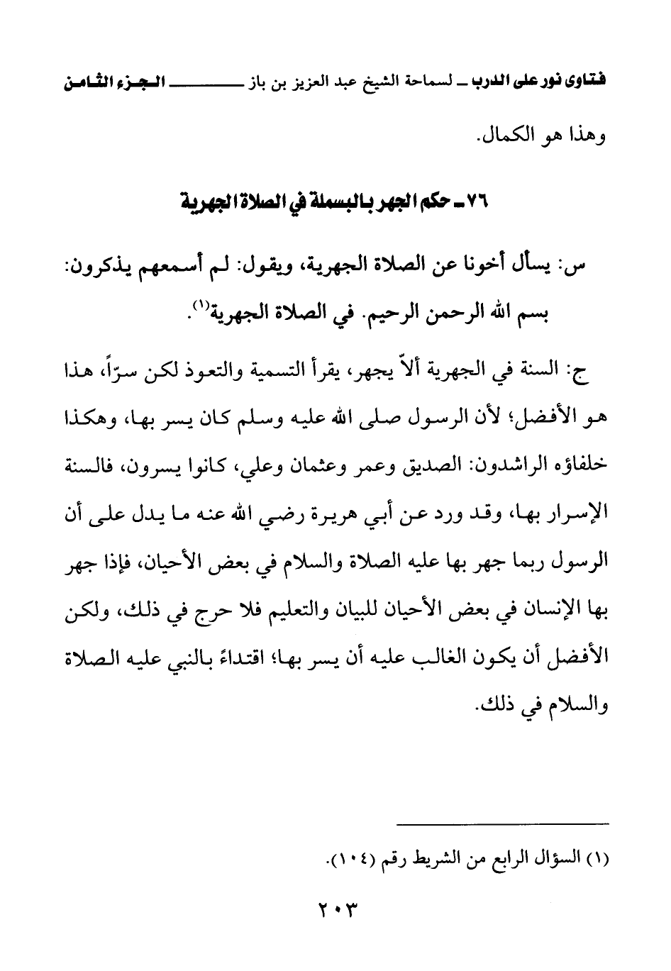 76 - حكم الجهر بالبسملة في الصلاة الجهرية