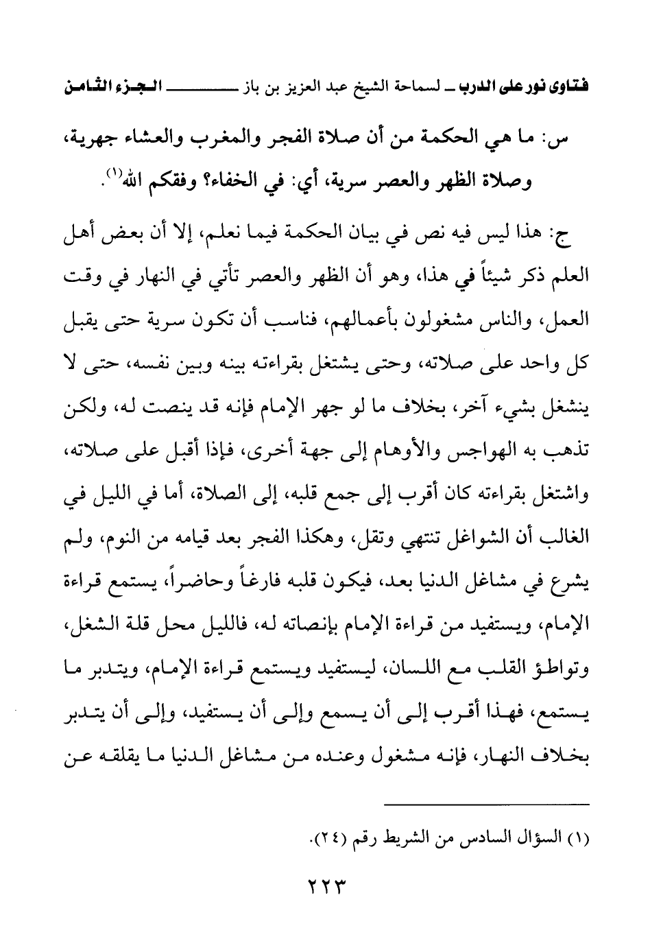 كتاب فتاوى نور على الدرب لابن باز بعناية الشويعر (اسم الجزء: 8)