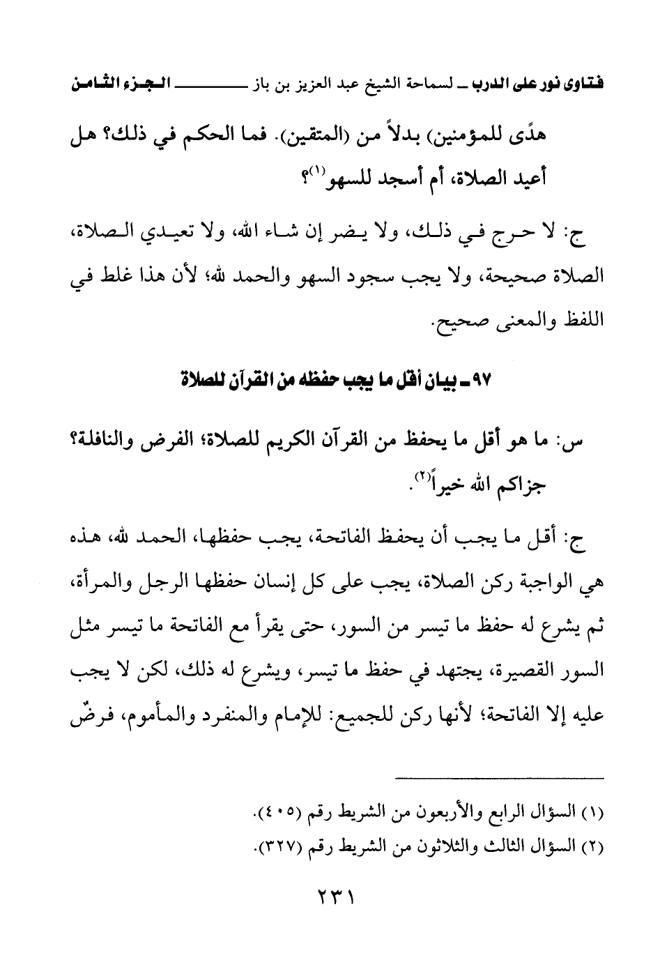 97 - بيان أقل ما يجب حفظه من القرآن للصلاة
