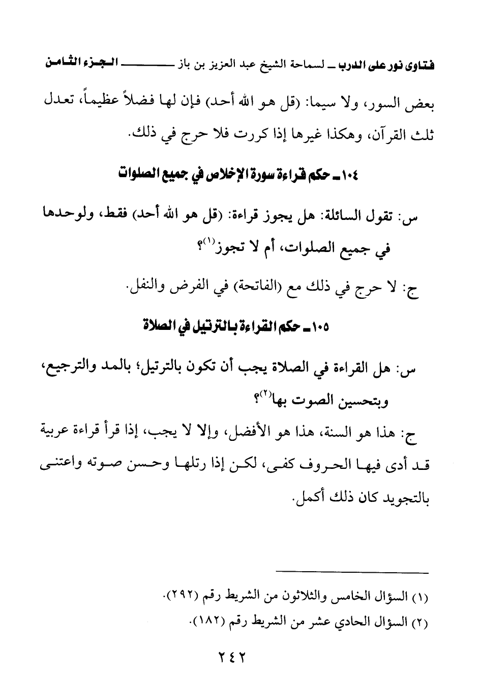 104 - حكم قراءة سورة الإخلاص في جميع الصلوات