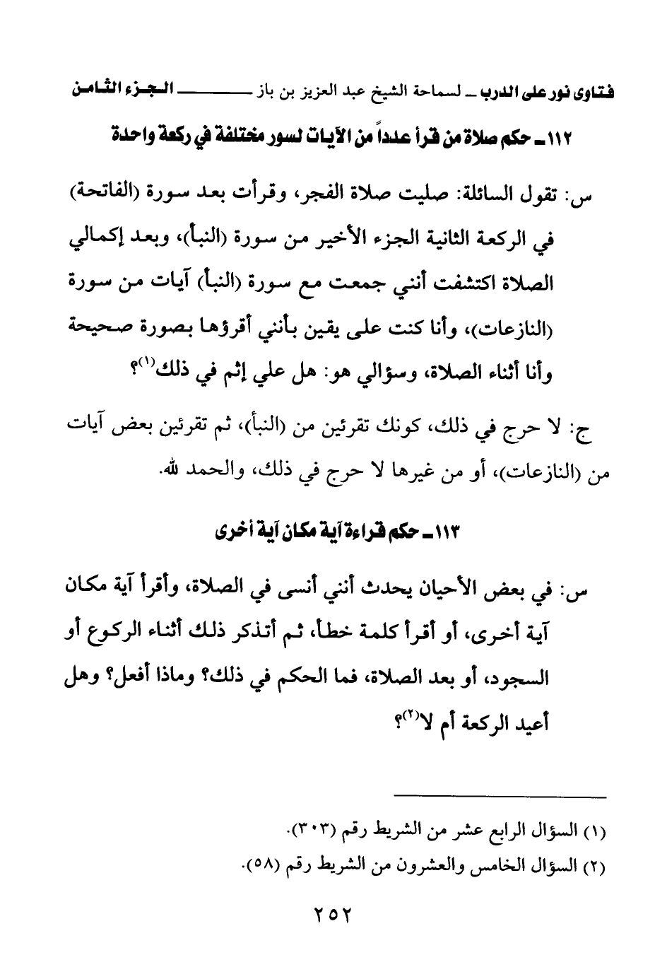 كتاب فتاوى نور على الدرب لابن باز بعناية الشويعر (اسم الجزء: 8)