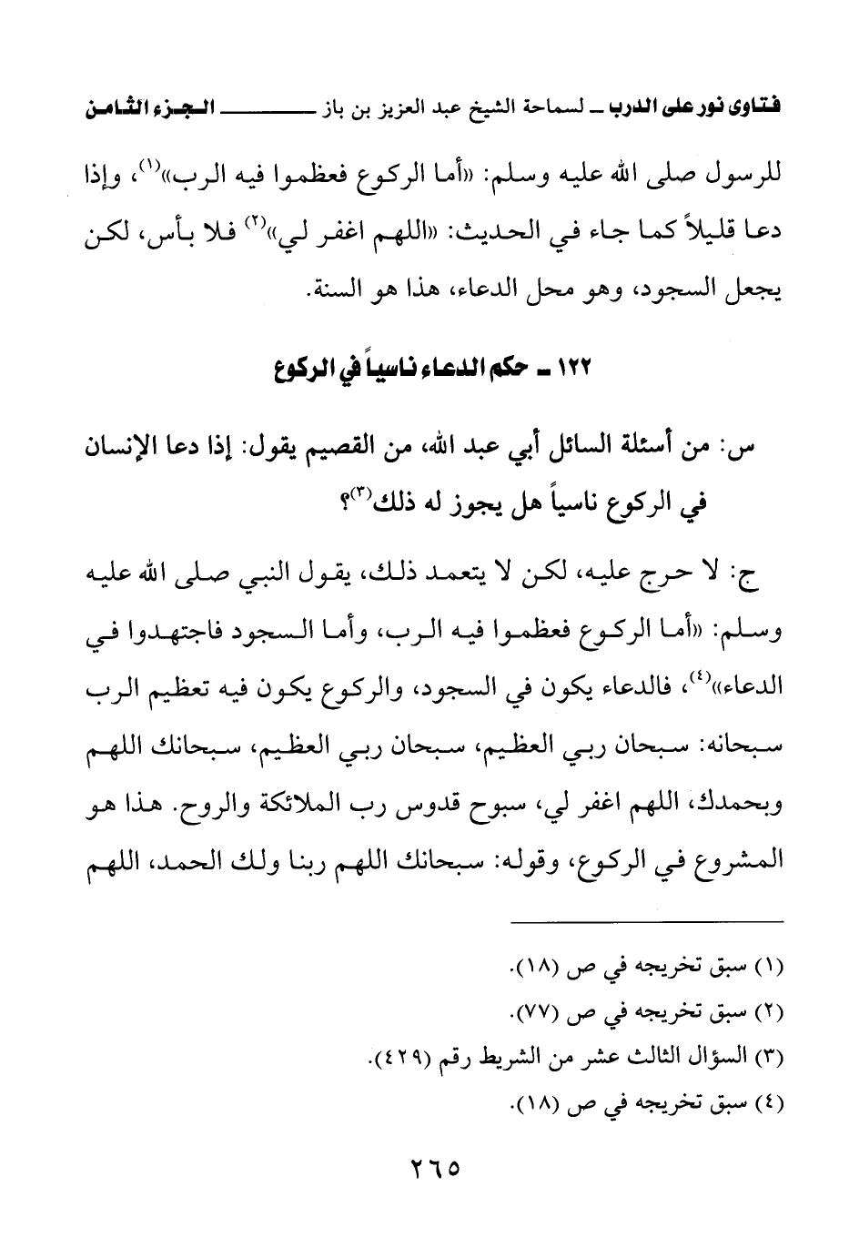 س: من أسئلة السائل أبي عبد الله، من القصيم يقول: إذا دعا الإنسان في الركوع ناسيا هل يجوز له ذلك؟ (¬1)