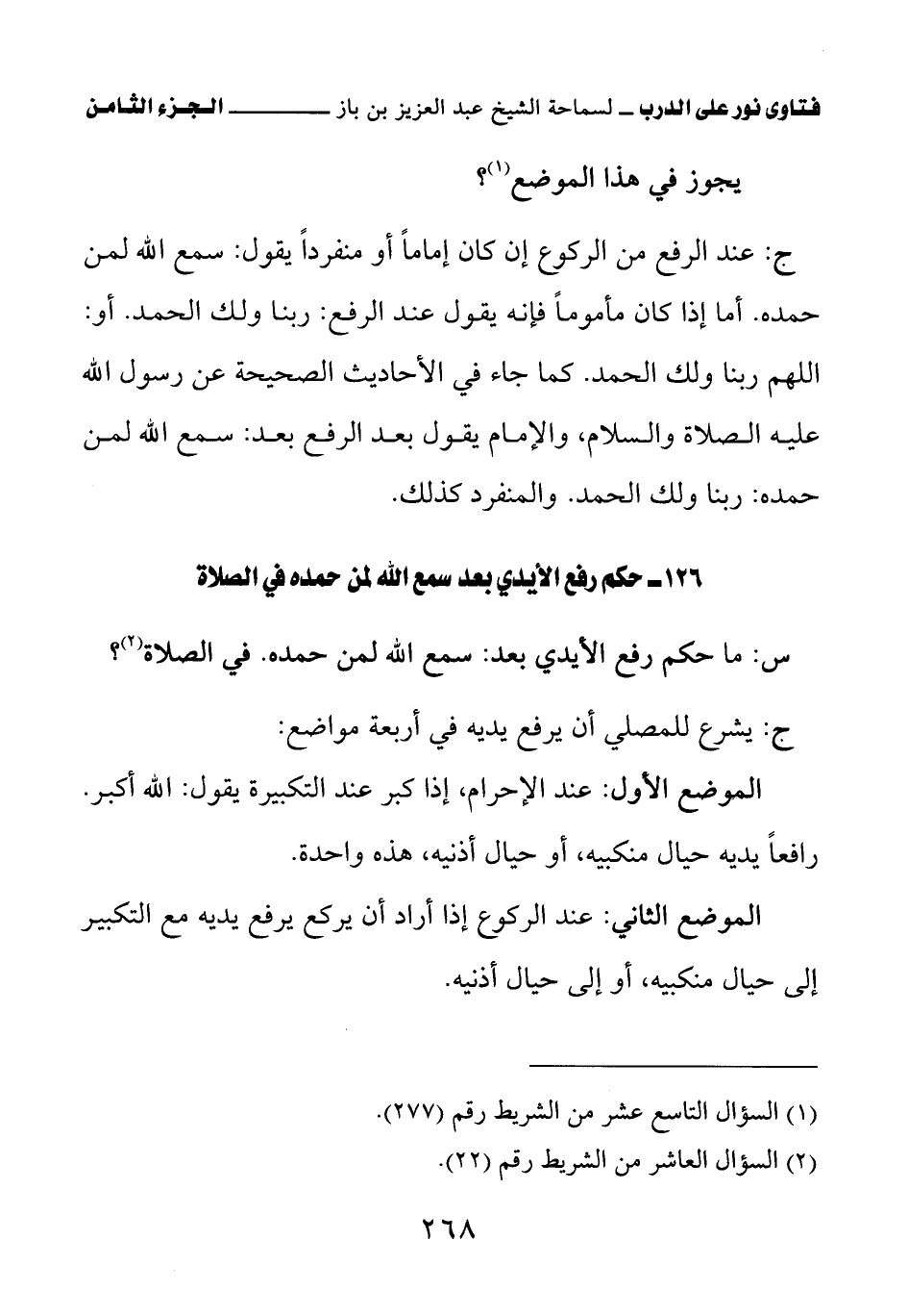 126 - حكم رفع الأيدي بعد سمع الله لمن حمده في الصلاة