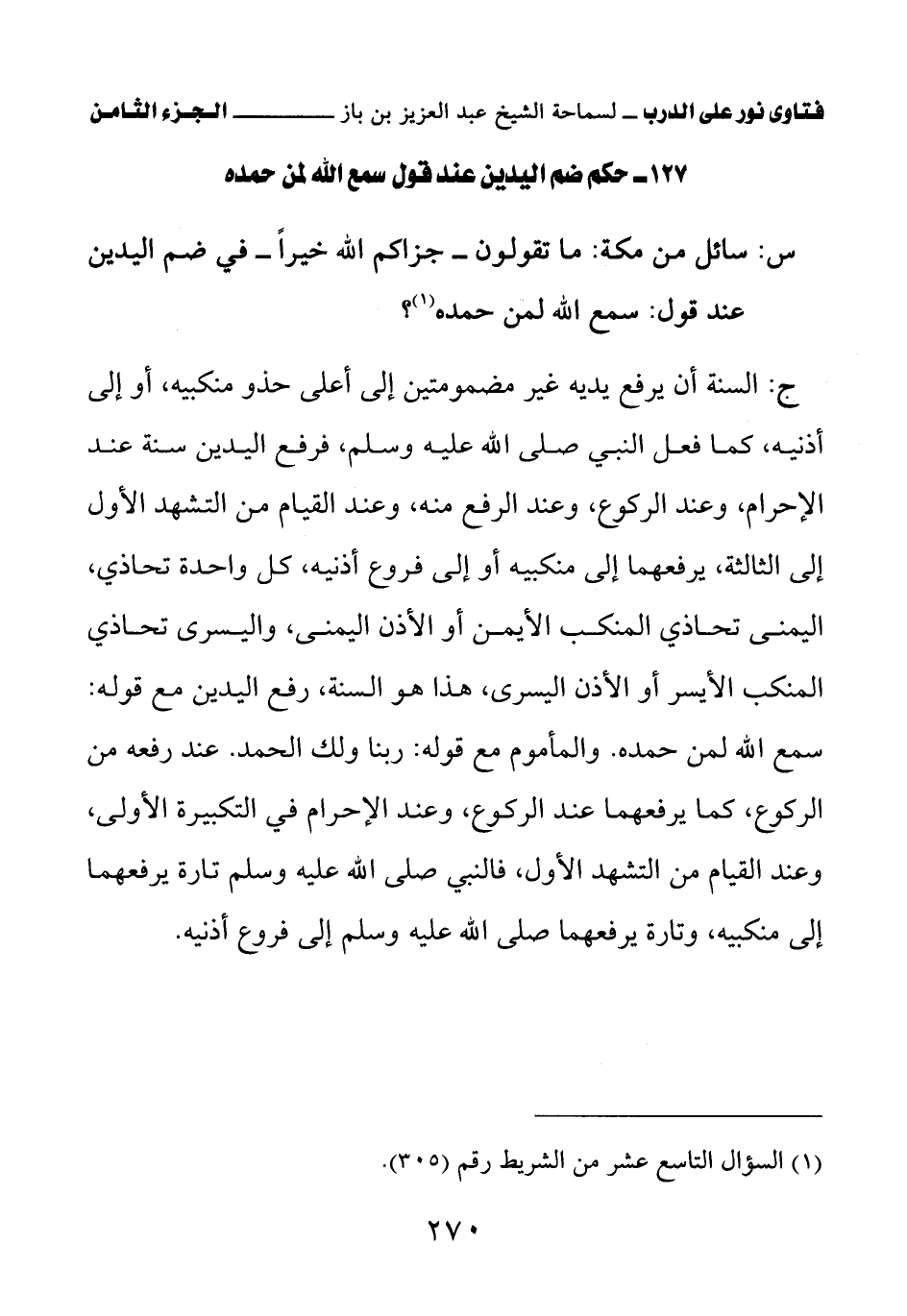 127 - حكم ضم اليدين عند قول سمع الله لمن حمده