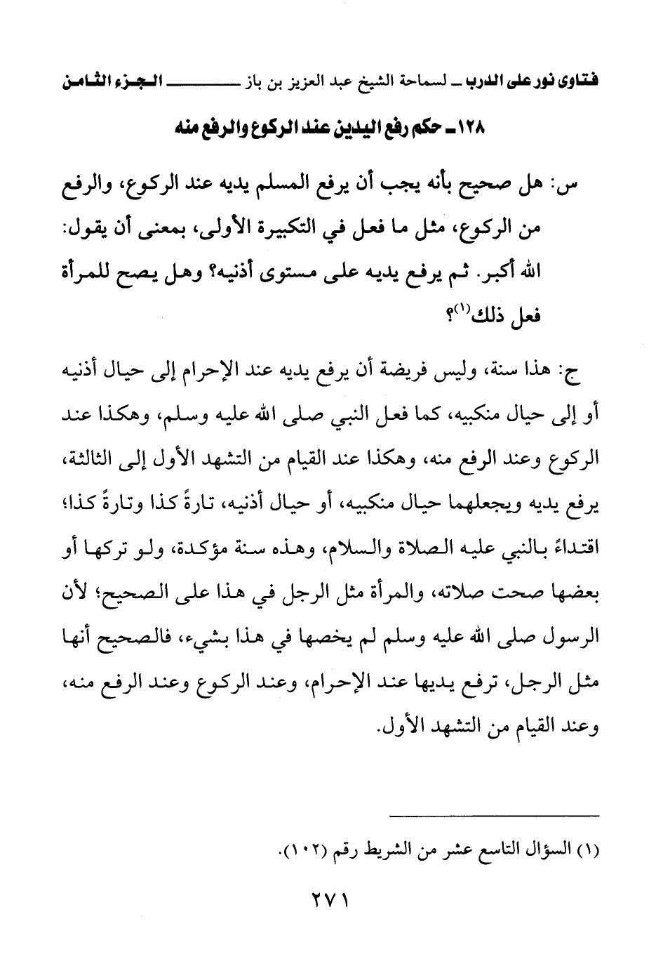 128 - حكم رفع اليدين عند الركوع والرفع منه