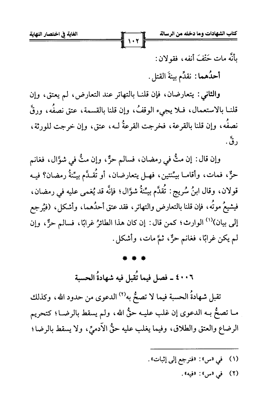 4006 - فصل فيما تُقبل فيه شهادةُ الحسبة