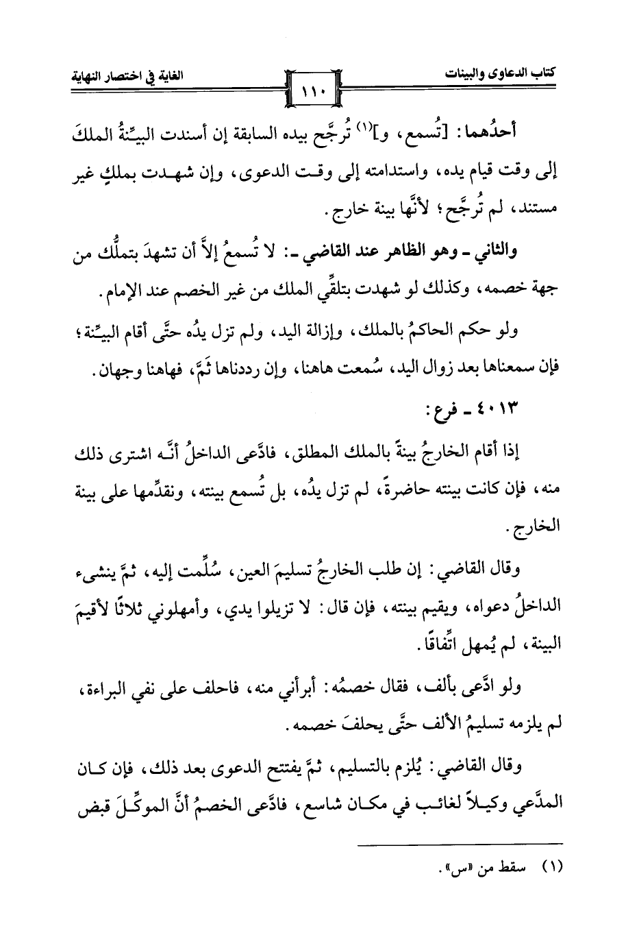 وقال القاضي: إن طلب الخارجُ تسليمَ العين، سُلِّمت إليه، ثمَّ ينشئ الداخلُ دعواه، ويقيم بينته، فإن قال: لا تزيلوا يدي، وأمهلوني ثلاثًا لأقيمَ البينة، لم يُمهل اتِّفاقًا.