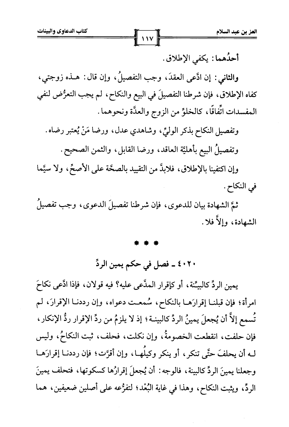 والثاني: إن ادَّعى العقدَ، وجب التفصيلُ، وإن قال: هذه زوجتي، كفاه الإطلاق، فإن شرطنا التفصيلَ في البيع والنكاح، لم يجب التعرُّض لنفي المفسدات اتِّفاقًا، كالخلوّ من الزوج والعدَّة ونحوهما.