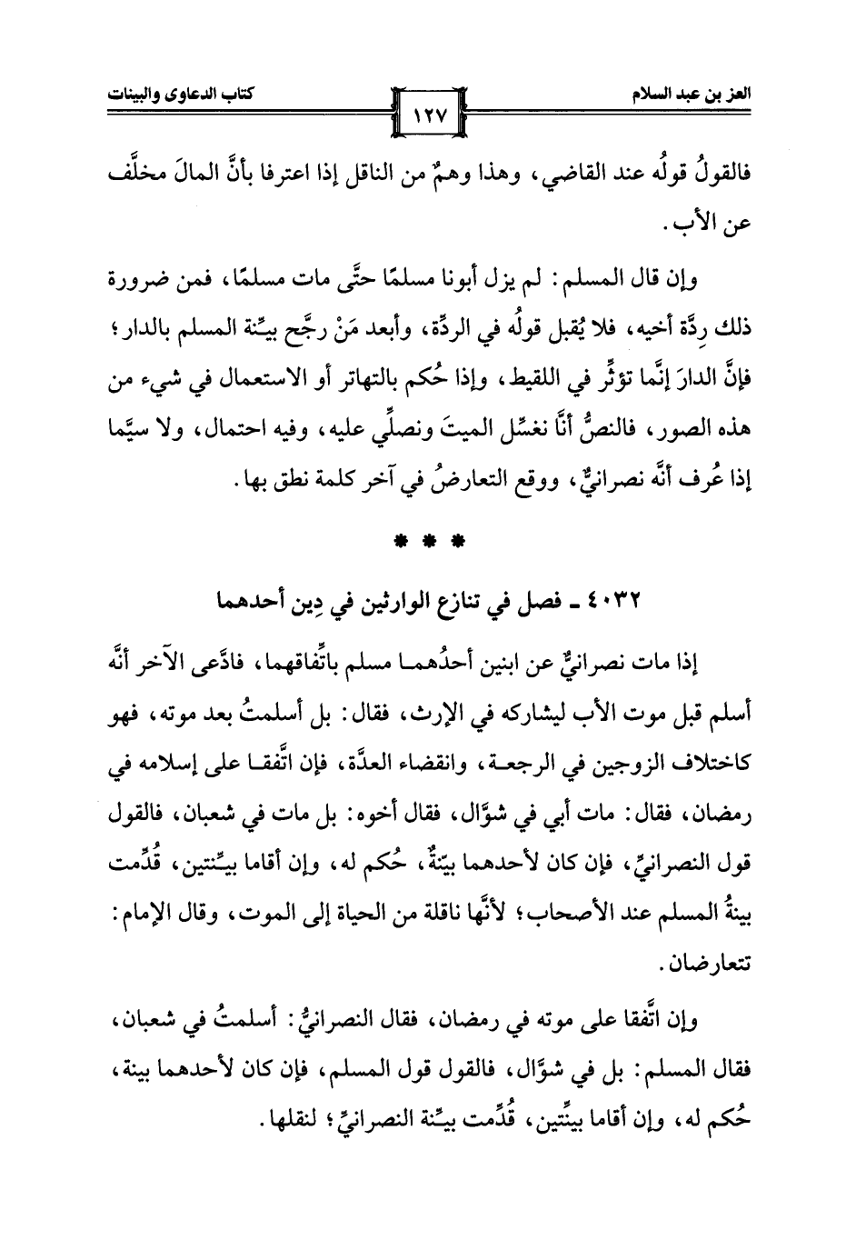 4032 - فصل في تنارع الوارثين في دِين أحدهما