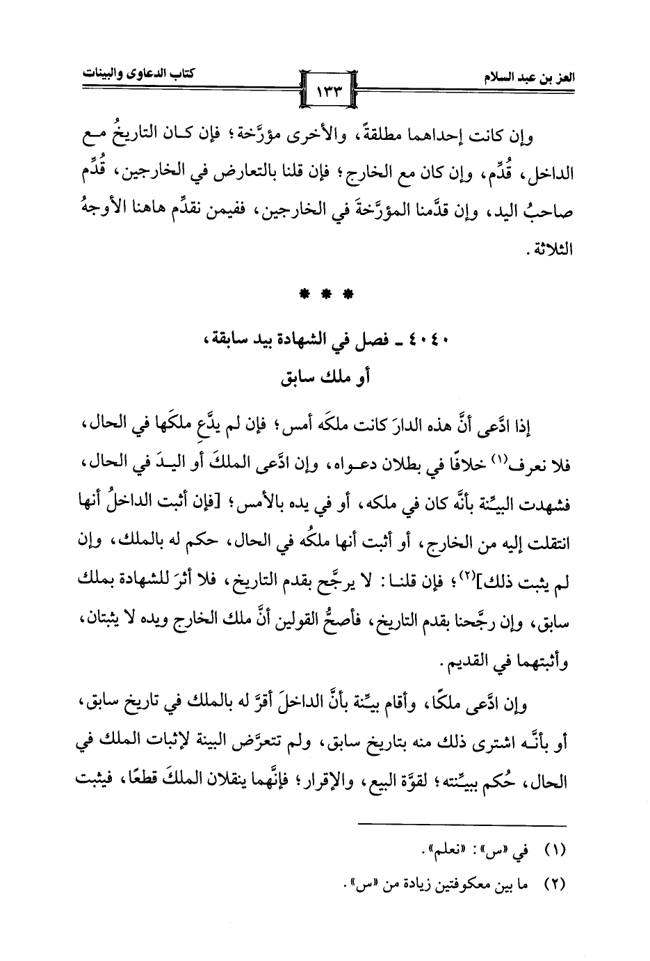 4040 - فصل في الشهادة بيد سابقة، أو ملك سابق