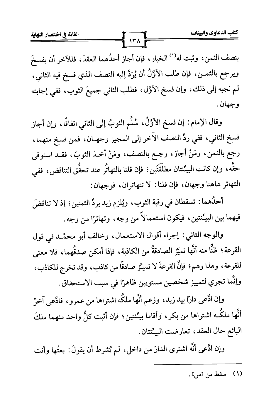 وقال الإمام: إن فسخ الأوَّلُ، سُلِّم الثوبُ إلى الثاني اتفاقًا، وإن أجاز فسخ الثاني، ففي ردِّ النصف الآخر إلى المجيز وجهان، فمن فسخ منهما، رجع بالثمن، ومَنْ أجاز، رجع بالنصف، ومَنْ أخذ الثوبَ، فقد استوفى حقَّه، وإن كانت البيِّنتان مطلَقَتَين؛ فإن قلنا بالتهاتُر عند تحقُّق التناقض، ففي التهاتر هاهنا وجهان، فإن قلنا: لا تتهاتران، فوجهان: