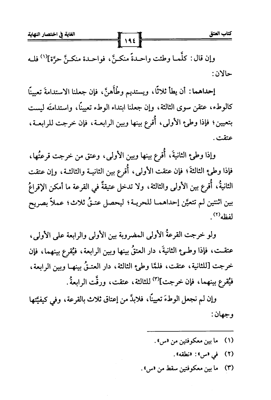 وإن لم نجعل الوطءَ تعيينًا، فلابدَّ من إعتاق ثلاث بالقرعة، وفي كيفيَّتها وجهان: