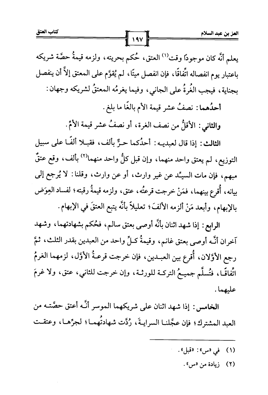 الخامس: إذا شهد اثنان على شريكهما الموسر أنَّه أعتق حصَّته من العبد المشترك؛ فإن عجَّلنا السرايةَ، رُدَّت شهادتُهما؛ لجرِّها، وعتقت