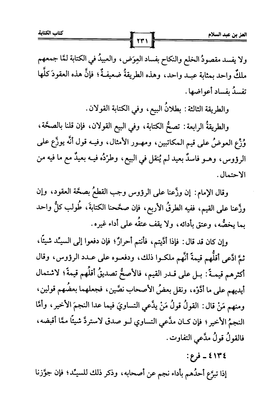 ولا يفسد مقصودُ الخلع والنكاح بفساد العِوَض، والعبيدُ في الكتابة لمَّا جمعهم ملكٌ واحد بمثابة عبد واحد، وهذه الطريقةُ ضعيفةٌ؛ فإنَّ هذه العقودَ كلَّها تفسدُ بفساد أعواضها.