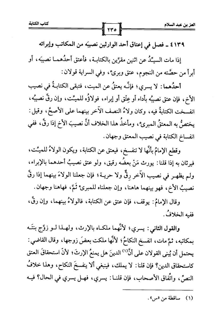 4139 - فصل في إعتاق أحد الوارثين نصيبَه من المكاتب وإبرائه