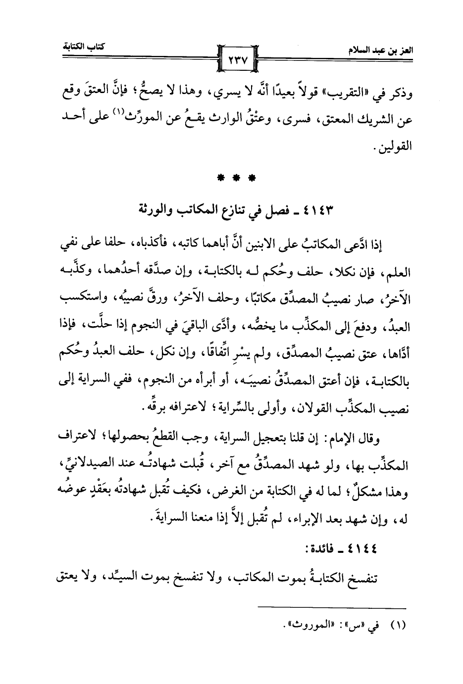 4143 - فصل في تنازع المكاتب والورثة