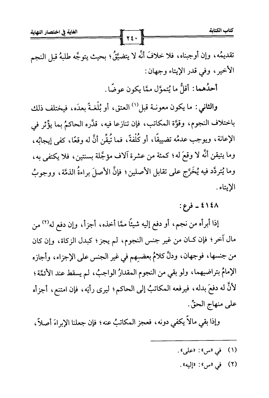والثاني: ما يكون معونة قبل (¬1) العتق، أو بُلْغةً بعدَه، فيختلف ذلك باختلاف النجوم، وقوَّة المكاتب، فإن تنازعا فيه، قدَّره الحاكمُ بما يؤَثر في الإعانة، ويوجب عدمُه تضييقًا، أو كُلْفةً، فما تُيقِّن أنَّ له وقعًا، كفى إيجابُه، وما يتيقن أنَّه لا وقعَ له؛ كمئة من عشرة آلاف مؤجَّلة بسنتين، فلا يكتفى به، وما يُتردَّد فيه يُخَرَّج على تقابل الأصلين؛ فإنَّ الأصلَ براءةُ الذمَّة، ووجوبُ الإيتاء.