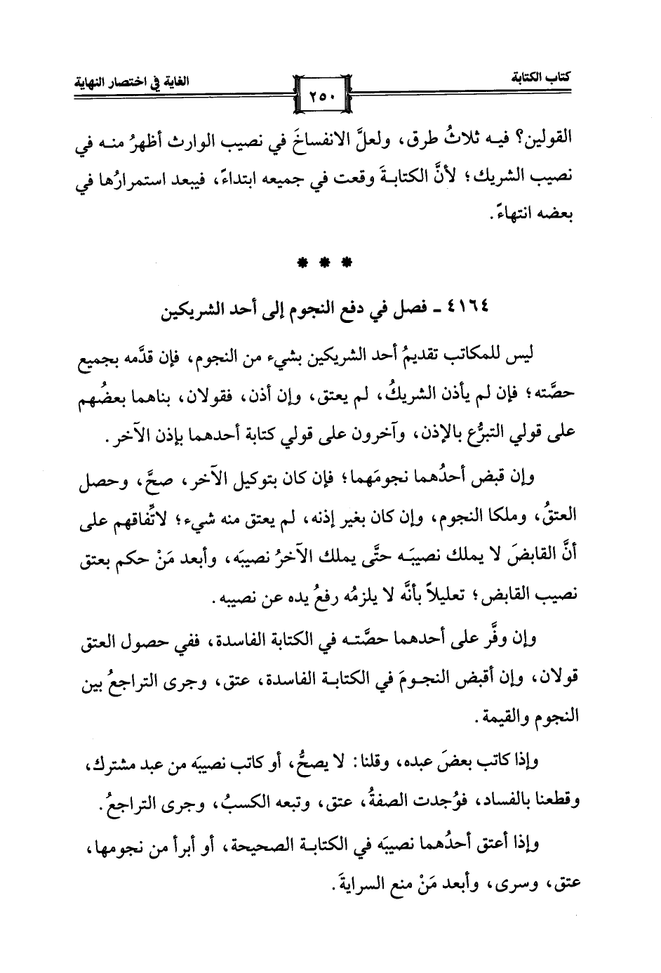 4164 - فصل في دفع النجوم إلى أحد الشريكين