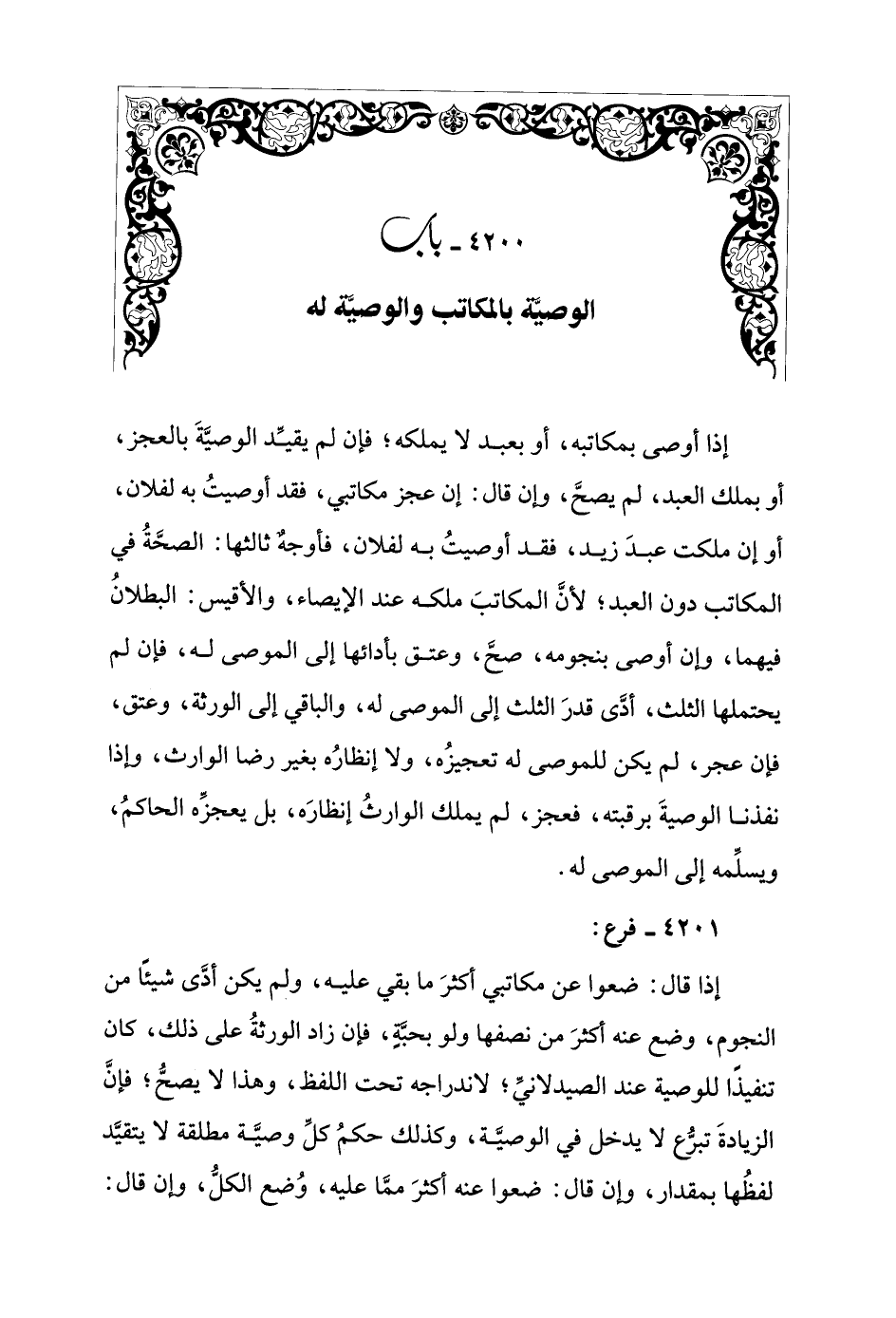 4200 - باب الوصية بالمكاتب والوصيَّة له