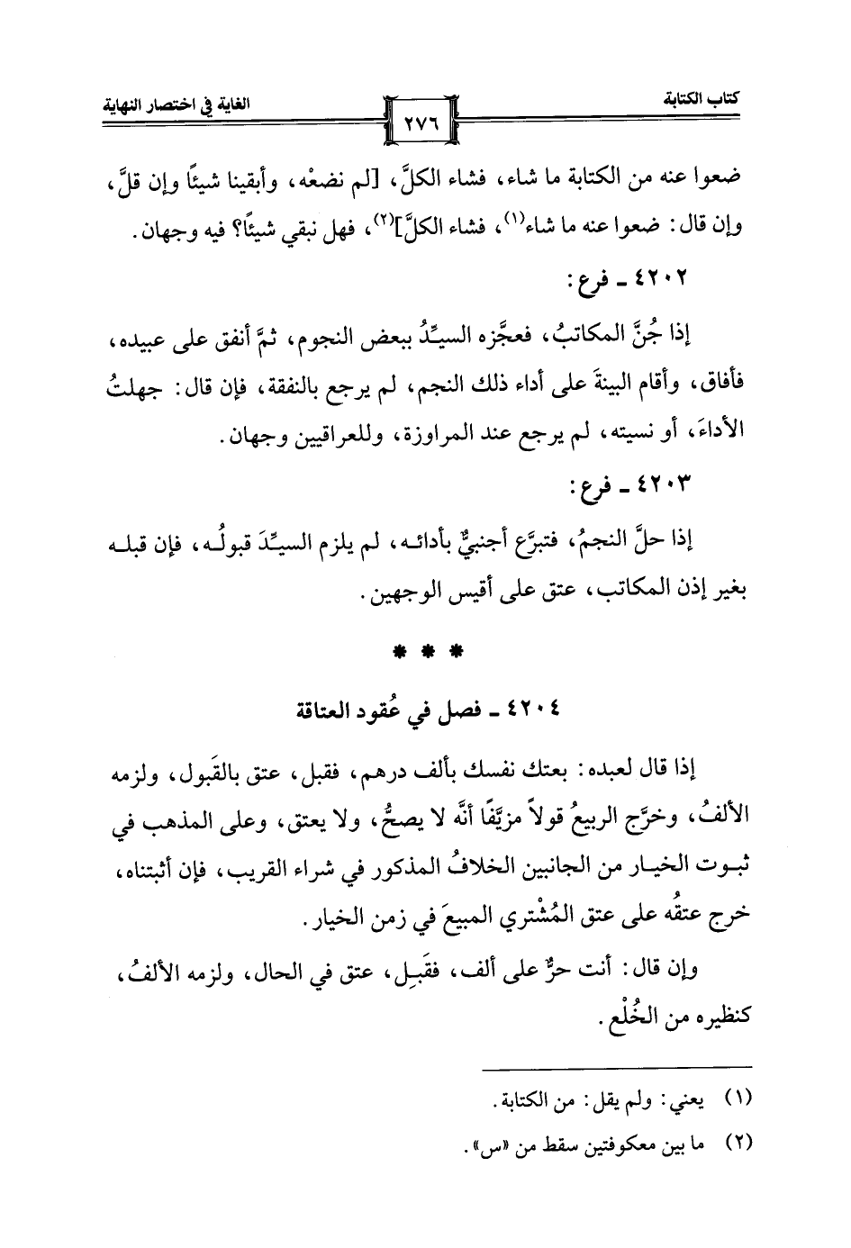 إذا جُنَّ المكاتبُ، فعجَّزه السيِّدُ ببعض النجوم، ثمَّ أنفق على عبيده، فأفاق، وأقام البينةَ على أداء ذلك النجم، لم يرجع بالنفقة، فإن قال: جهلتُ الأداءَ، أو نسيته، لم يرجع عند المراوزة، وللعراقيين وجهان.