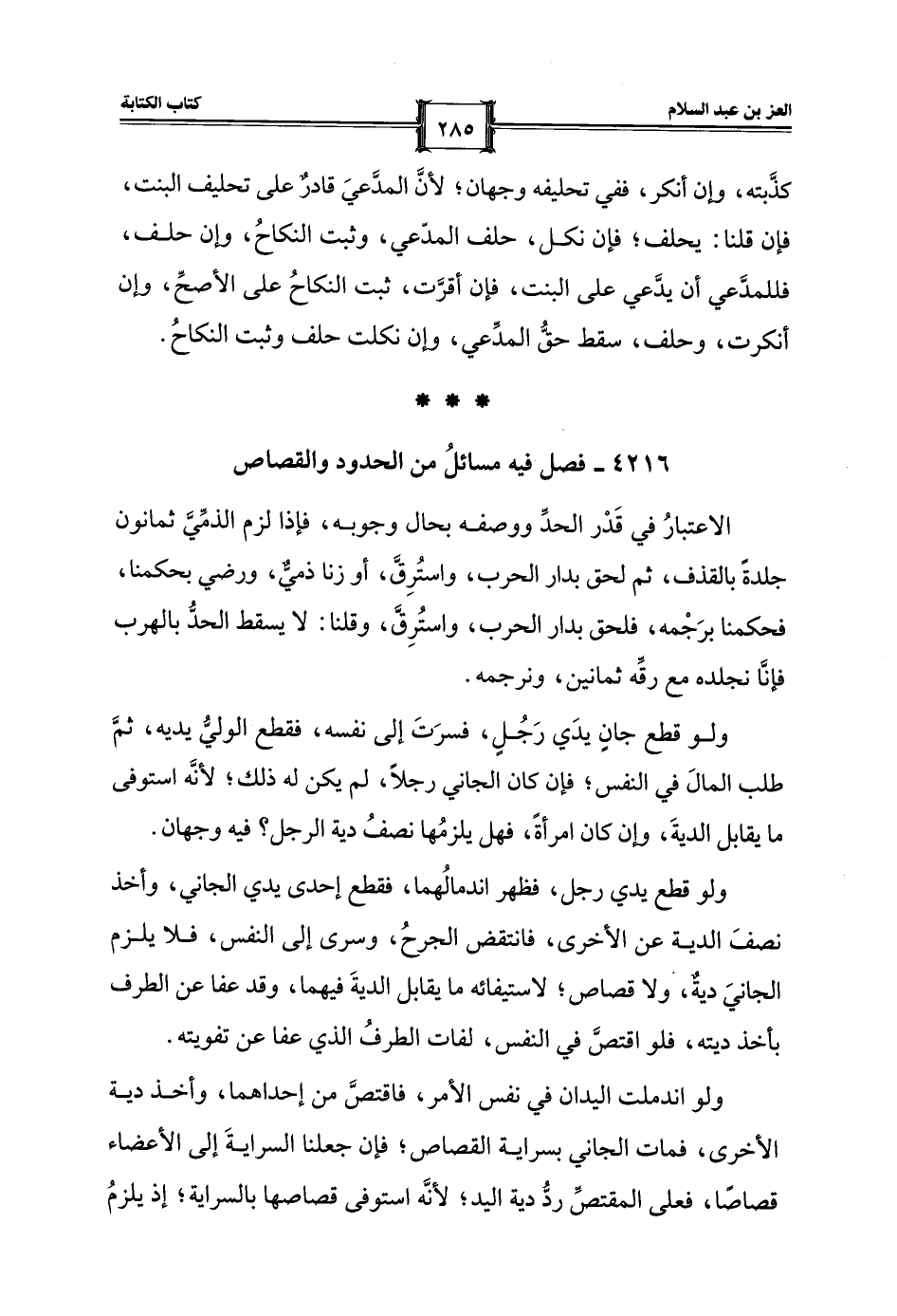 4216 - فصل فيه مسائلُ من الحدود والقصاص