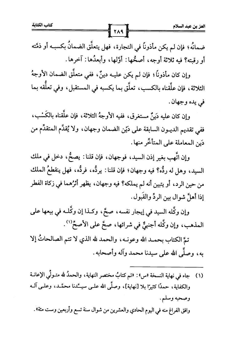 تمَّ الكتاب بحمد الله وعونه، والحمد لله الذي لا تتم الصالحاتُ إلا به، وصلَّى الله على سيدنا محمد وآله وأصحابه.