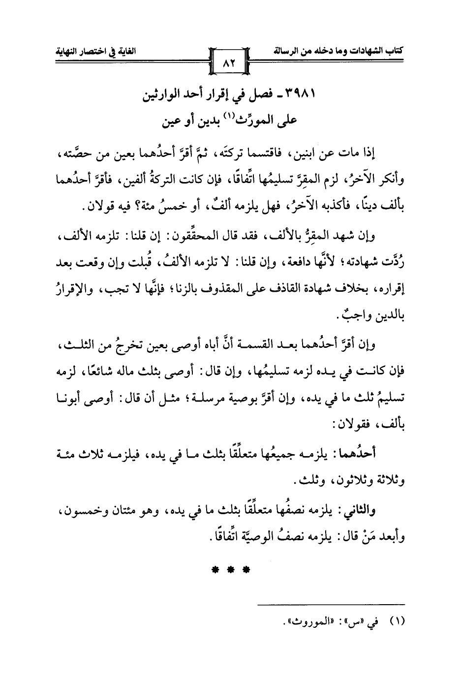 3981 - فصل في إقرار أحد الوارثين على المورِّث (¬1) بدين أو عين